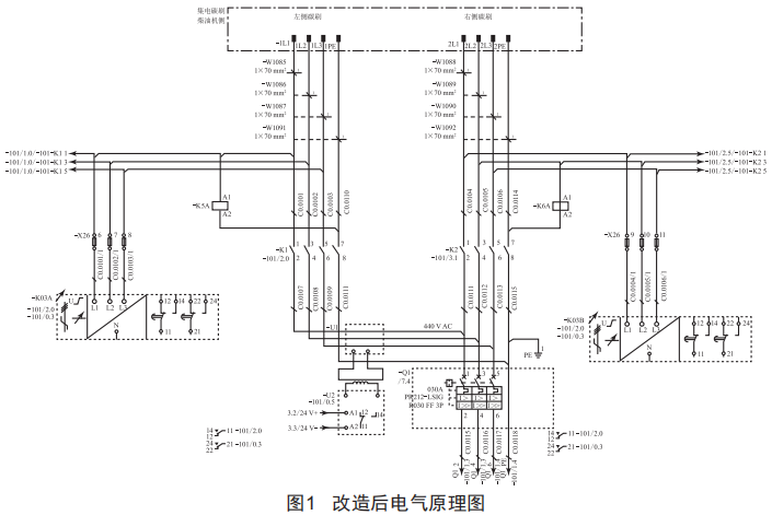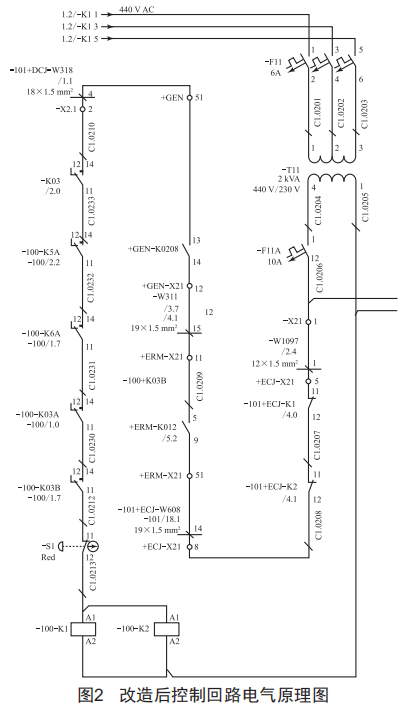 改造后電氣原理圖如圖1所示,控制回路原理圖如圖2所示。