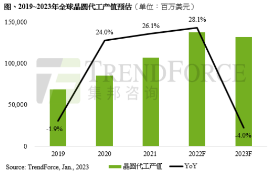 TrendForce集邦咨詢(xún):供應(yīng)鏈庫(kù)存去化緩慢,客戶(hù)持續(xù)降低投片量,預(yù)估2023年晶圓代工產(chǎn)值同比減少4%