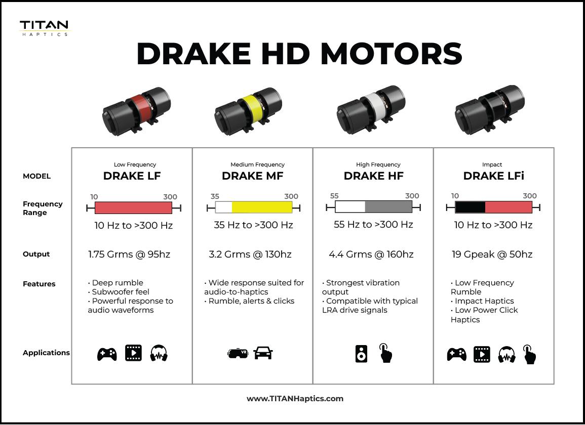 領(lǐng)先的觸覺技術(shù)公司TITAN Haptics,激動地將DRAKE觸覺陣列引入中國市場。這種創(chuàng)新解決方案允許工程師定制TacHammer DRAKE電機(jī)的性能,提供增強(qiáng)的觸覺反饋,無需定制觸覺電機(jī)。DRAKE觸覺陣列由多個TacHammer DRAKE組成 - 這是TITAN Haptics最新提供的觸覺電機(jī)。這些電機(jī)旨在超越傳統(tǒng)觸覺電機(jī)(如旋轉(zhuǎn)的ERM和彈簧型LRA)的限制。TacHammer DRAKE在游戲和虛擬現(xiàn)實到音樂等廣泛的應(yīng)用中,是TITAN Haptics最緊湊而強(qiáng)大的寬帶觸覺電機(jī)。它提供10-300 Hz的頻率響應(yīng)和4.5Grms的振動。TacHammer DRAKE有四種不同的變體,為工程師提供了靈活性,可以在他們的集群中混合和匹配電機(jī),以產(chǎn)生他們想要的觸覺效果。