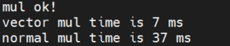 向量乘法也比普通的乘法性能強(qiáng)大一些,接近5倍的差別。