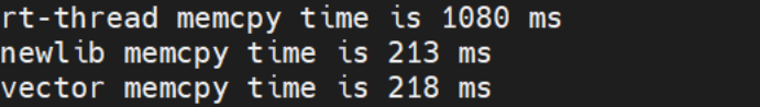 顯然,內(nèi)存拷貝操作newlib中的memcpy性能是最佳的,而向量操作的memcpy反而其次,最差的是rt-thread的rt_memcpy。這里的原因是newlib的memcpy的是經(jīng)過(guò)優(yōu)化后的,而vector memcpy也可能是優(yōu)化的不好導(dǎo)致性能與newlib的memcpy相當(dāng)。rt-thread采用純C語(yǔ)言實(shí)現(xiàn),其通用性比較好,但是性能不佳。