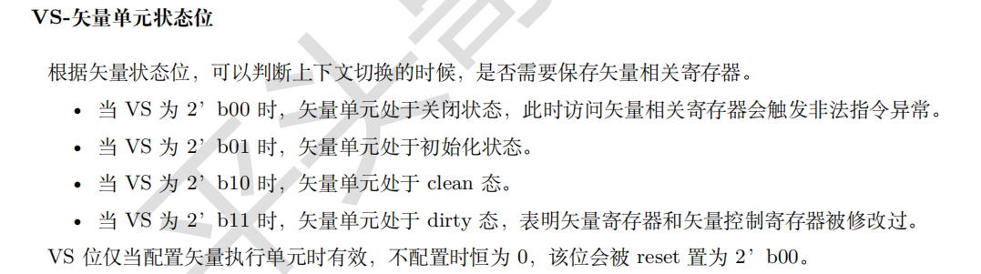 VS位于MSTATUS寄存器的23到24位。但是需要注意的是,當(dāng)使用RVV時(shí),需要開(kāi)啟浮點(diǎn)寄存器(FS),不然會(huì)報(bào)錯(cuò)。