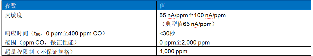 此電路選擇的傳感器是Alphasense CO-AX一氧化碳傳感器。表1顯示與此常見類型的一氧化碳傳感器相關(guān)的典型規(guī)格。