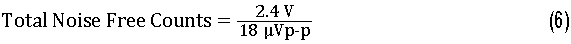 系統(tǒng)無噪聲分辨率由峰峰值輸出噪聲確定。ADA4528-2的最大輸出電壓為2.4 V,因此無噪聲數(shù)為: