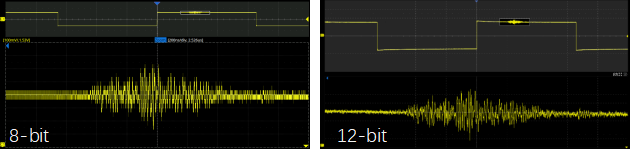 SDS8000A基于硬件ADC實現(xiàn)真正的12-bit垂直分辨率,相比傳統(tǒng)8-bit示波器,其量化精度提升高達(dá)16倍,能夠有效降低測試過程中的量化誤差,完整還原信號的細(xì)微變化。尤其在高動態(tài)范圍或小信號測量場景下,12-bit分辨率可捕捉更多波形細(xì)節(jié),避免因精度不足導(dǎo)致的測量失真。此外,在ERES高分辨率模式下,SDS8000A更可進(jìn)一步提升至16-bit分辨率,特別適用于微弱信號的精確提取與分析,幫助工程師在研發(fā)調(diào)試中洞察更多信號特征。