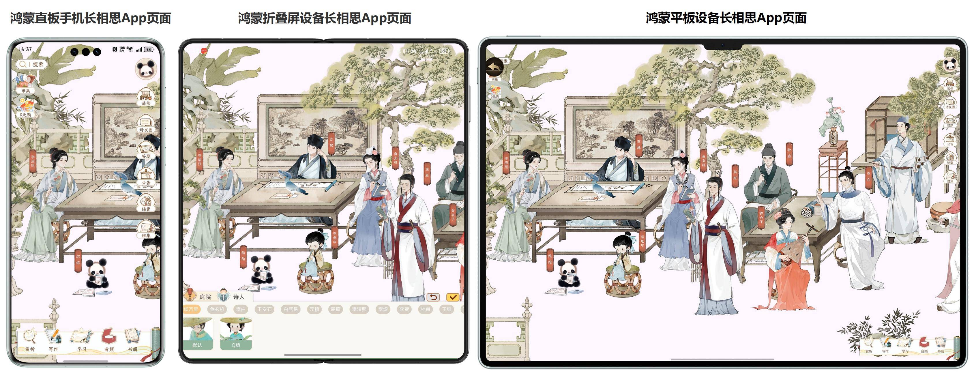 長(zhǎng)相思開發(fā)團(tuán)隊(duì)針對(duì)華為折疊及平板設(shè)備進(jìn)行了深度鴻蒙適配,包含界面級(jí)、功能級(jí)一多適配。使長(zhǎng)相思App可以在不同的硬件設(shè)備之間隨意調(diào)用、互助共享,讓用戶享受無縫連接的全場(chǎng)景體驗(yàn)。