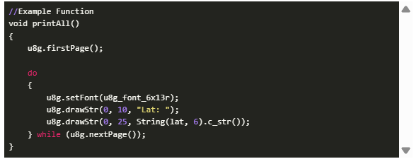 ?GPS數(shù)據(jù)顯示:在特定的屏幕上(current_screen == 2用于位置/速度/高度,current_screen == 3用于時(shí)間/日期),程序讀取GPS數(shù)據(jù)并在顯示器上顯示值(緯度,經(jīng)度,速度,高度,時(shí)間和日期)。它在顯示GPS數(shù)據(jù)之前檢查其有效性。
