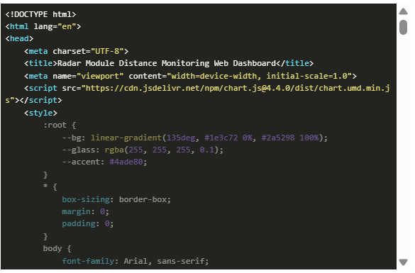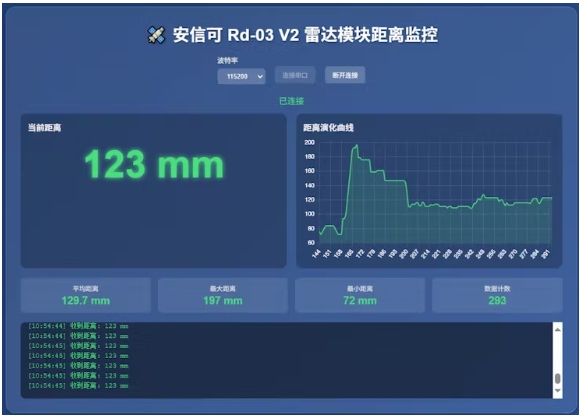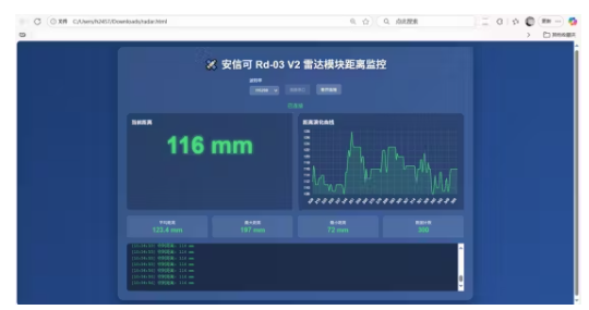 4. web界面將顯示實時距離測量和動態(tài)歷史演變曲線。