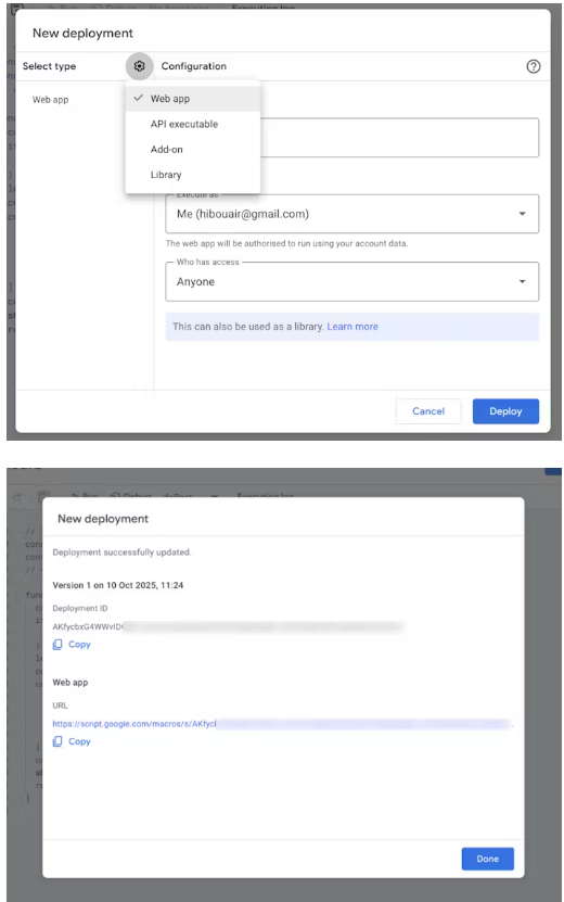?單擊Deploy,然后復(fù)制Web應(yīng)用程序URL。這將是您的WEBHOOK_URL。