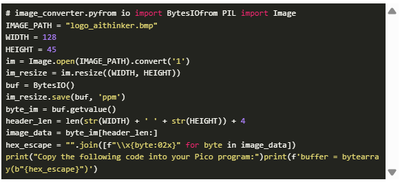 根據(jù)需要配置輸入圖像路徑、名稱和輸出大小等參數(shù),然后運行腳本生成一個可供使用的字節(jié)數(shù)組。