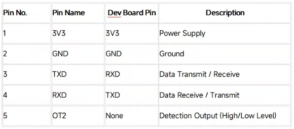 將Rd-03_V2雷達模塊的引腳連接到目標開發(fā)板的串口引腳。