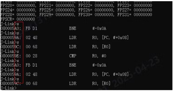 這將停止CPU的執(zhí)行。執(zhí)行該命令后,可以查看PC指針等信息。
